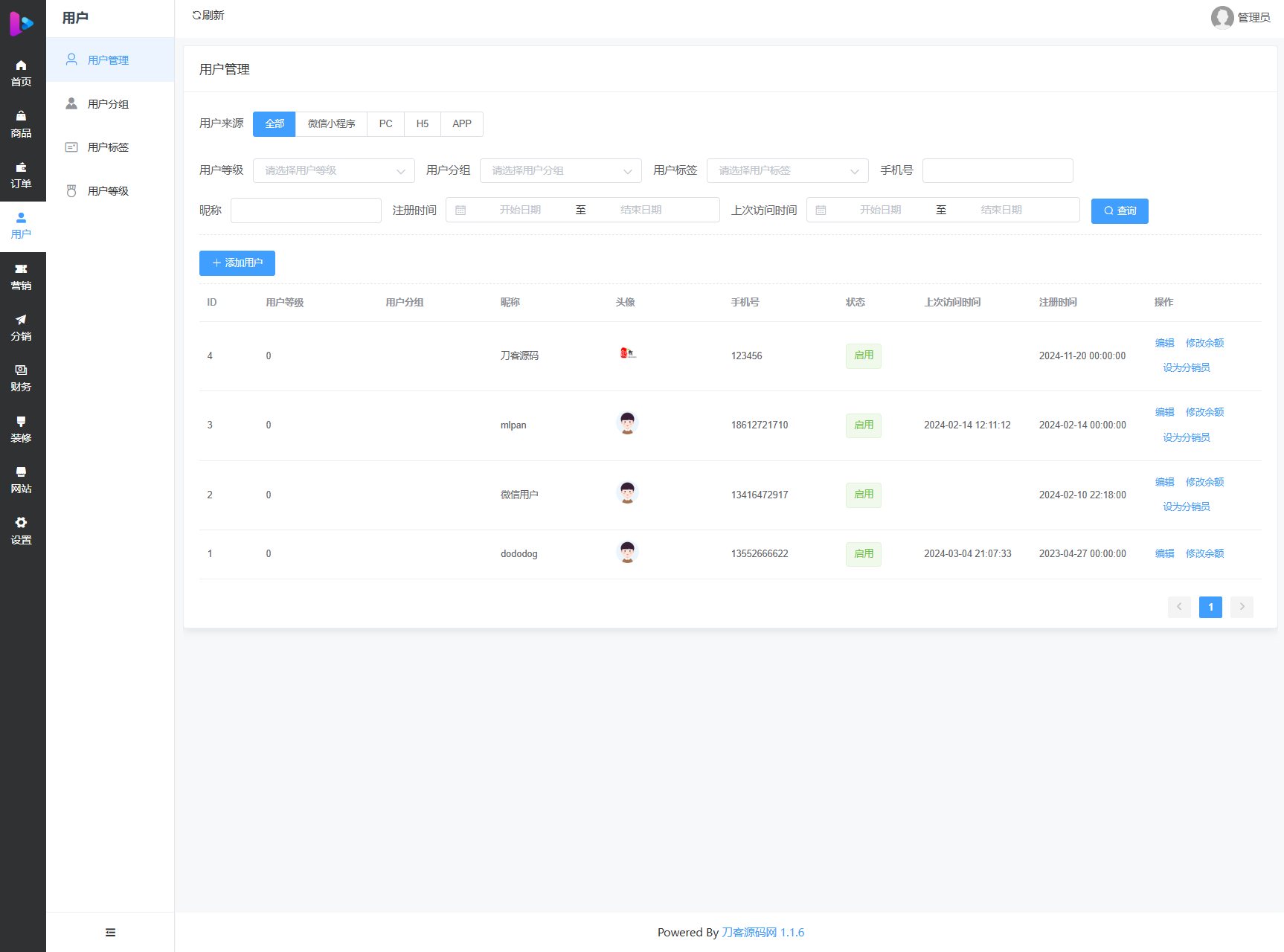 包含小程序商城、H5商城、公众号商城、PC商城、APP